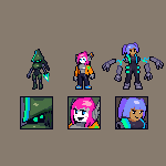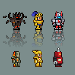 Been inactive for a while so I'm gonna post some WIPs Gonna do a big project where I take a bunch of characters & creatures from games and sprite them on one canvas Only got a few games planned rn so I'm open for ideas #pixelart #aseprite #ドット絵 #subnautica #GenshinImapct