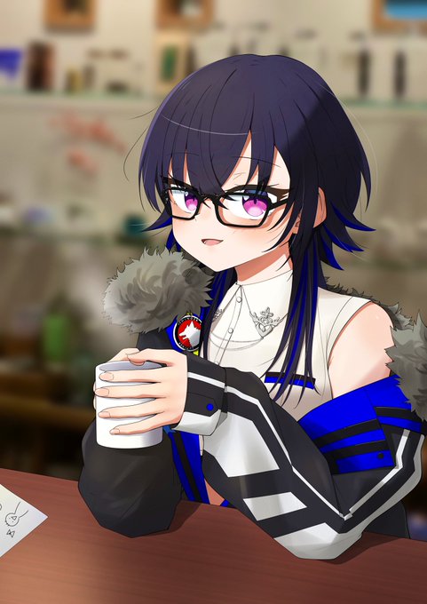 新衣装の黒縁メガネも最高だった!!👓☕️ #一ノ瀬の絵 #一ノ瀬うるは新衣装
