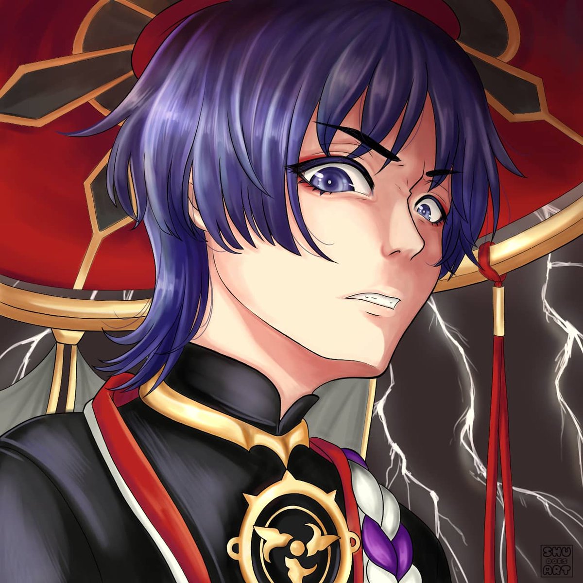 Done! I'm happy, I was able to tackle a few things I'm not used to: Drawing guys, drawing a different angle and doing bolder shading! Thanks Scaramouche, you've been super fun to draw~ #genshinimpactfanart #scaramouche #mihoyoart #genshinimpact #drawing #ibisPaintX