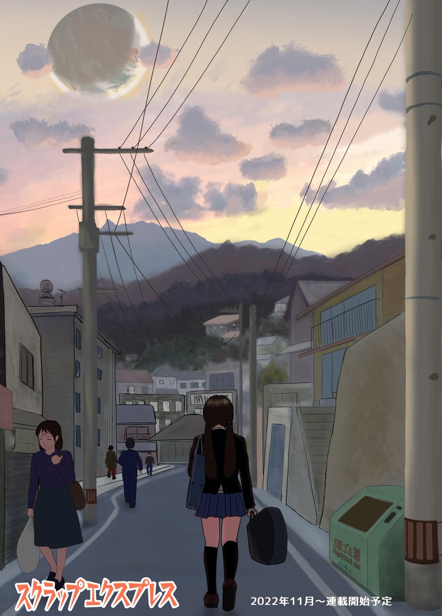 漫画「スクラップエクスプレス」投稿再開に向けプロット練り直し+キービジュアル作成中 憂子(うきこ) ※絵師さんフォロバします。 #冬の創作クラスタフォロー祭り #絵描きさんと繫がりたい #一次創作 #一次創作絵師拡散フェス02 #イラスト #絵の世界