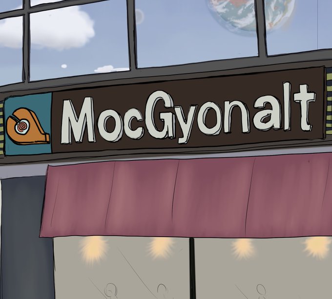 ワクドナルド以外で行く、作中のファーストフードパロディ🍔 MocGyonalt モクギョナルト ℃℃~る #スクラップエクスプレス ⇔横読み版⇔ amazon.co.jp/dp/B0BP167LTK?… #Kindleインディーズマンガ ⇕縦読み版⇕はマンガボックスインディーズ等で公開 #漫画 #絵描きさんと繋がりたい #一次創作