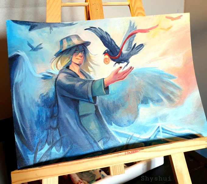 (you did not see the big mistake I've made) I painted Philza getting a message from one of his crows !! :D #philzafanart