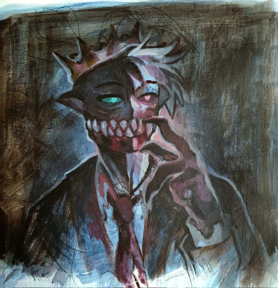 Something I started as a warm-up Idk what compelled me to paint him on top of pictures of steaks,, but here he is I still can't take correct pictures of my traditional stuff lmao #wilbursootfanart