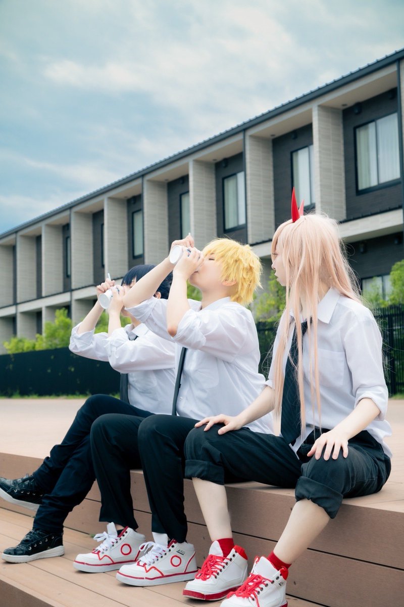 5 7 チェンソーマン/コスプレ⚠️ 早川家 🟡早パイ奢りあざーす 🔴でかしたぞ 🔵この後しっかり働けよ 🟡うわーベロの色変わってやんの〜 🔴デンジもじゃ!ハッハッハッ 🟡パイセンは〜? 🔵早く食えよ デンジ@kiku__hashi アキ@hnybaby 📷@TAKAcosphoto 23/07/03 21:16