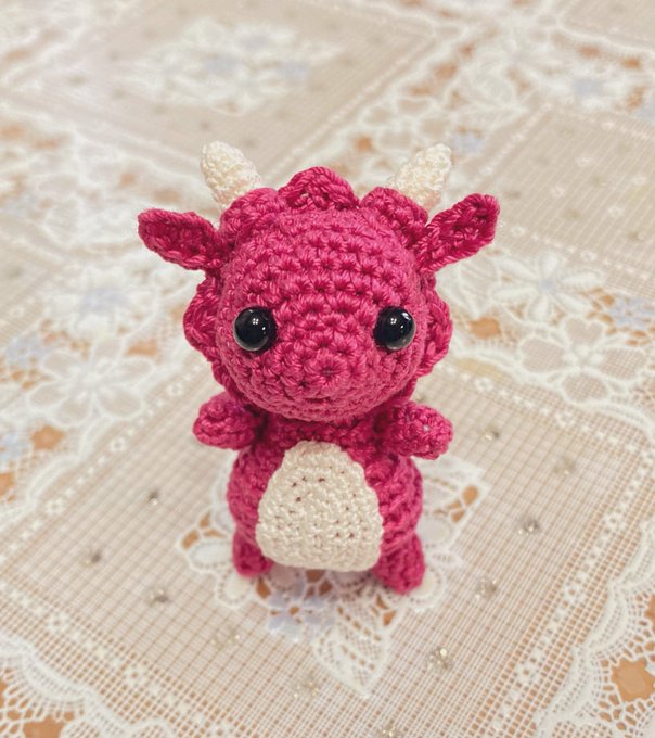 赤い子竜が誕生しました🐉✨ ちっちゃくてとても可愛い子💕 #あみぐるみ #ドラゴン