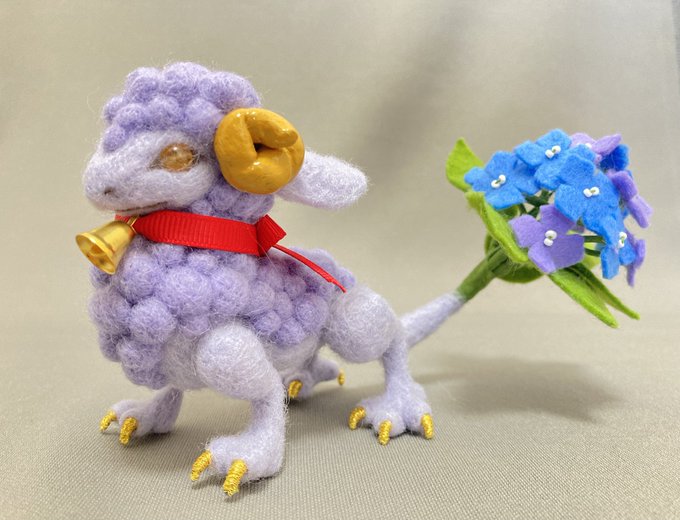 16 84 紫陽花ドラゴンできました!もこもこさせるのがなかなか大変でしたが可愛くなってくれました( ´ ▽ ` ) #羊毛フェルト #ドラゴン #紫陽花 #TLに紫陽花を咲かせよう 22/06/11 09:26