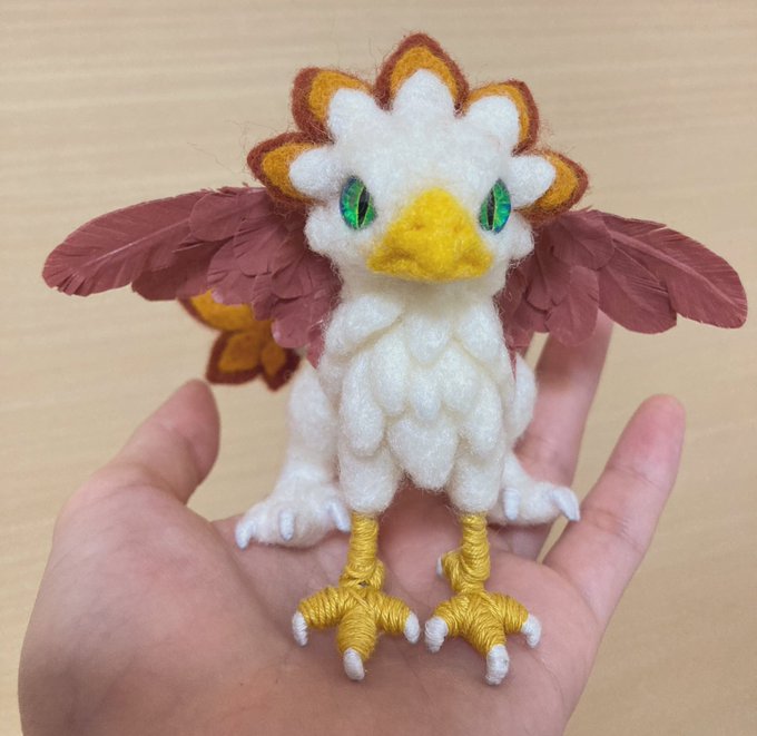 グリドラちゃん嘴修正して誕生しました🦅🐉✨手乗りちゃんです(*'▽'*) #羊毛フェルト #グリフォン #ドラゴン
