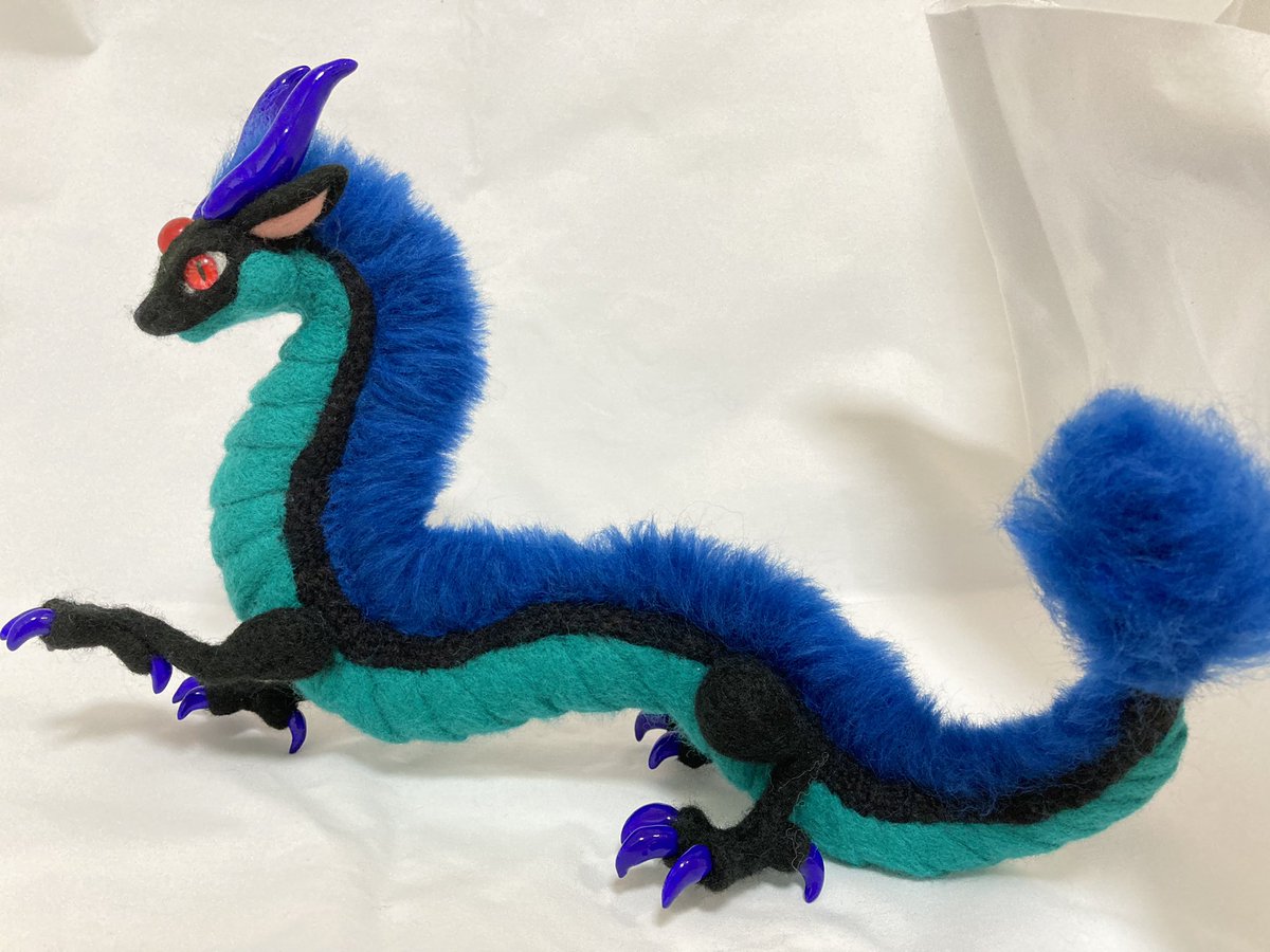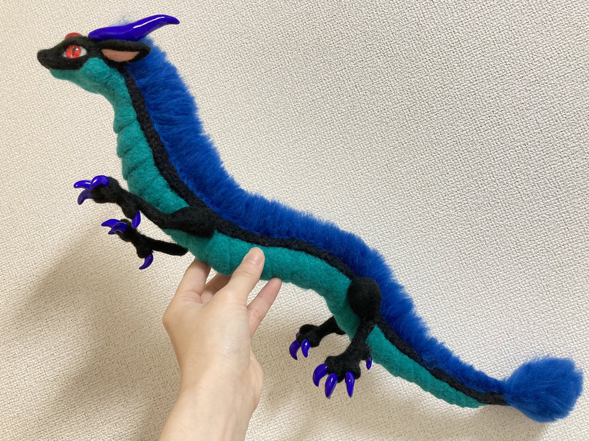 13 86 ドラゴン誕生しました🐉✨ 人懐っこい子に育ちました( ´ ▽ ` ) 伸びるととても長い…! #羊毛フェルト #ドラゴン #オーダーメイド 22/12/06 13:19