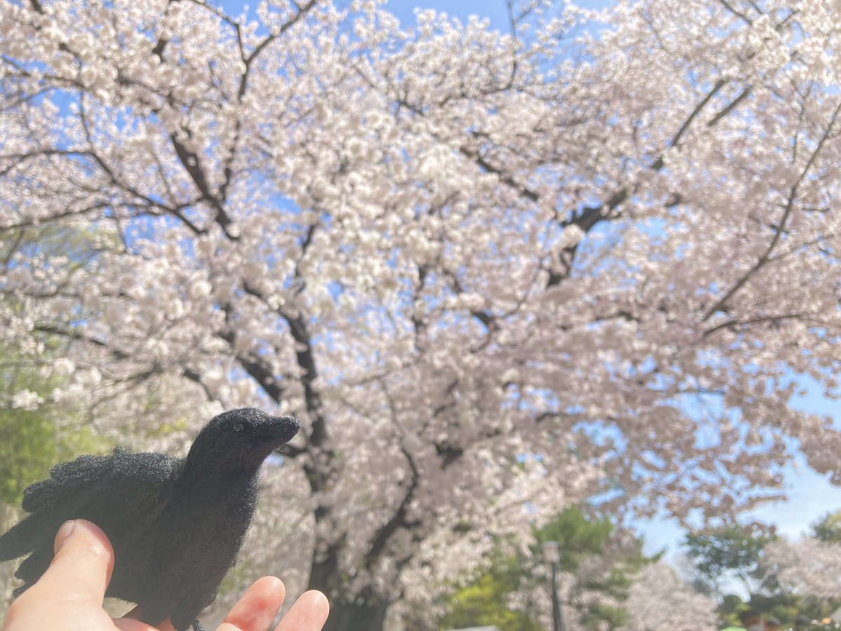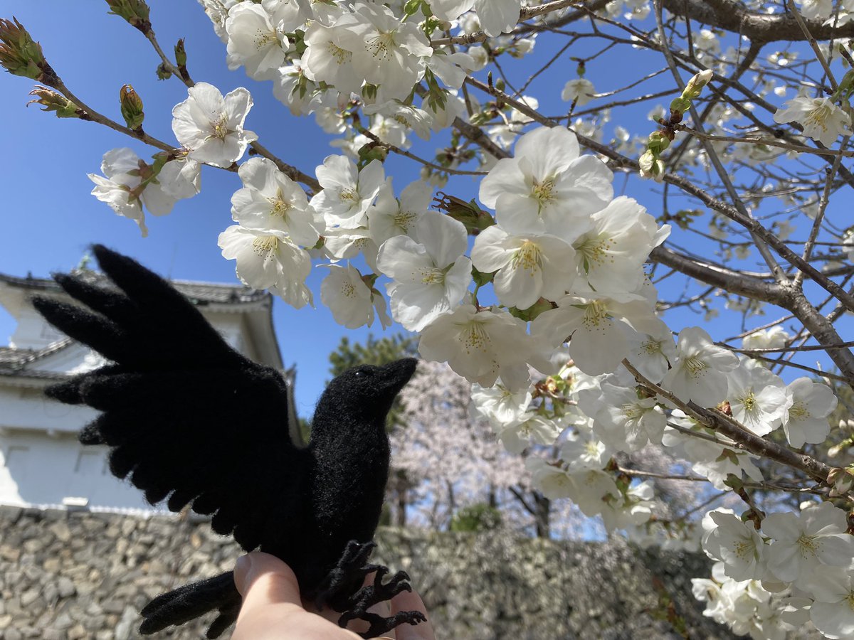 3 13 名古屋城に桜見に行ってきました🌸ちょうどいい感じに咲いてて綺麗でした( ´ ▽ ` )八咫烏ちゃんも一緒に行ってお写真いっぱい撮ってきましたよ📷✨ #羊毛フェルト #八咫烏 #名古屋城 23/03/28 14:42