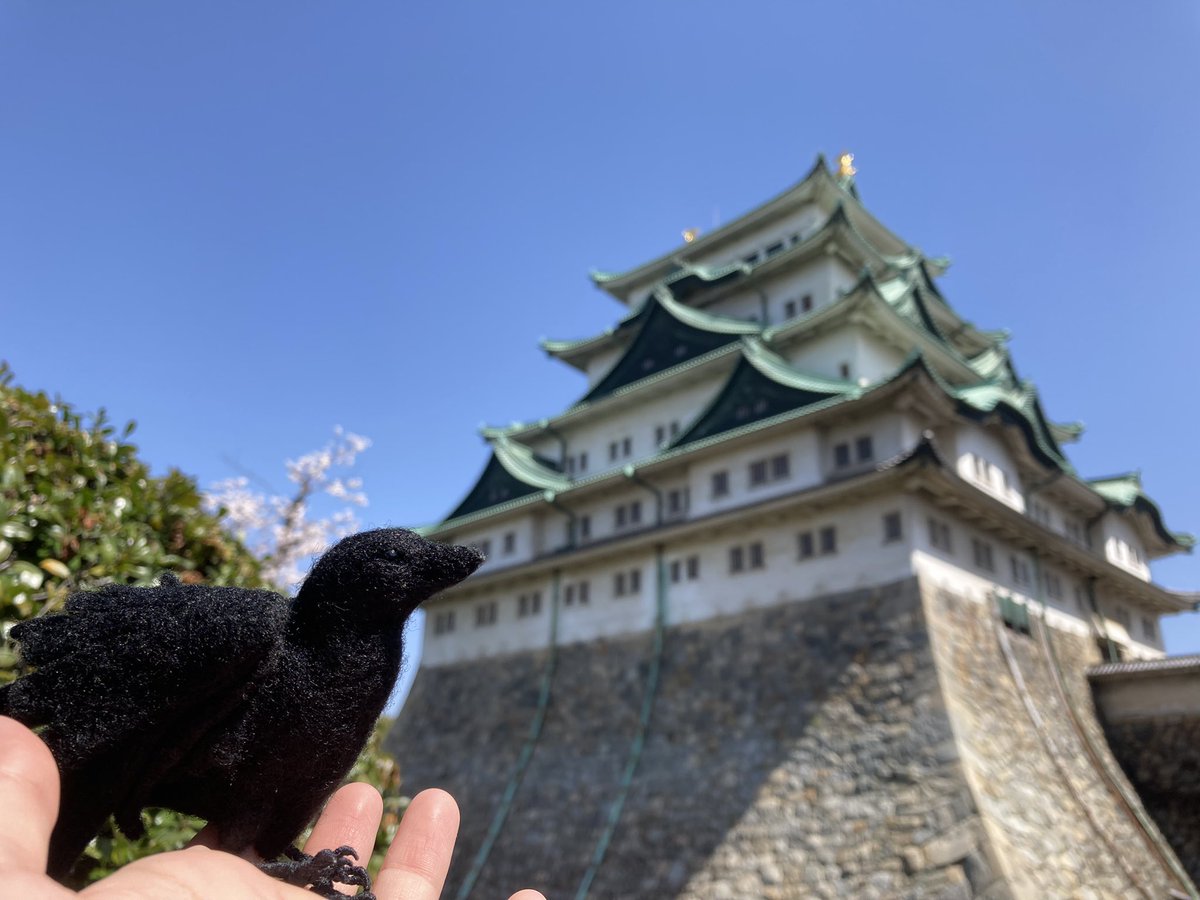 名古屋城に桜見に行ってきました🌸ちょうどいい感じに咲いてて綺麗でした( ´ ▽ ` )八咫烏ちゃんも一緒に行ってお写真いっぱい撮ってきましたよ📷✨ #羊毛フェルト #八咫烏 #名古屋城