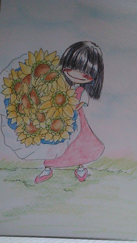 皆様方おはようございます☺落書き屋柴子味噌でございます。朝開店になります🌻本日はちょっとポップな印象の華ちゃんです。 #色鉛筆イラスト #お花のイラスト #イラスト好きさんと繋がりたい よろしくお願いします❤