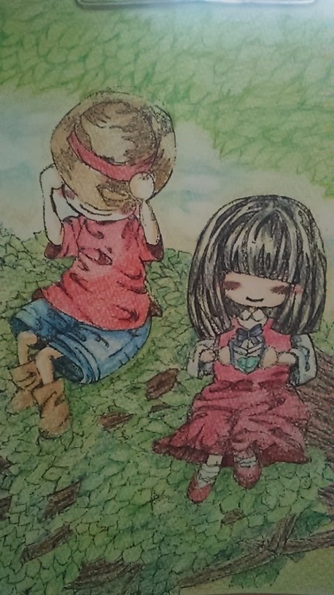 おはようございます✨ 落書き屋柴子味噌の今日の1枚です☺ 麦藁ちゃんが海で拾った宝物は、華ちゃんへ贈られた様です。 #色鉛筆イラスト #夏のイラスト #イラスト好きな人と繋がりたい よろしくお願いします☺