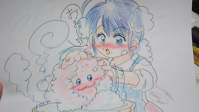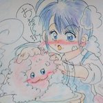 @sheepswing #もふしら手芸部 #もふしらファンアート 一応描いてみました💦 柴子味噌、ポッキーゲームは難しく、ゲーム後のももねえを洗おう‼に成りました💦💦 ふわんと柔らかももねえさん❤描けていたらいいな☺
