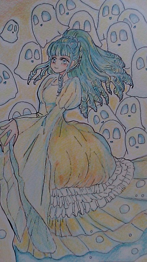 皆様方おはようございます。落書き屋柴子味噌、朝開店です✨ 今回は『お化けちゃんのお姫様』です。 #色鉛筆イラスト #オリジナルキャラクター #ハロウィンイラスト #イラスト好きさんと繋がりたい よろしくお願いします💕