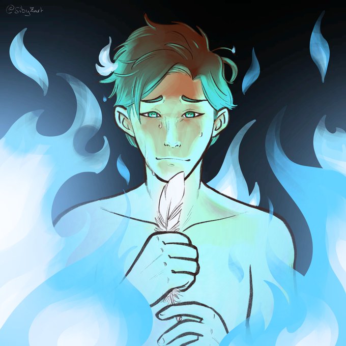 [OC - Elijah] #inktober2021day19 : cheerful despair / candle Blue flames on candles means a spiritual presence #Inktober #witchtober2021 #obsynktober
