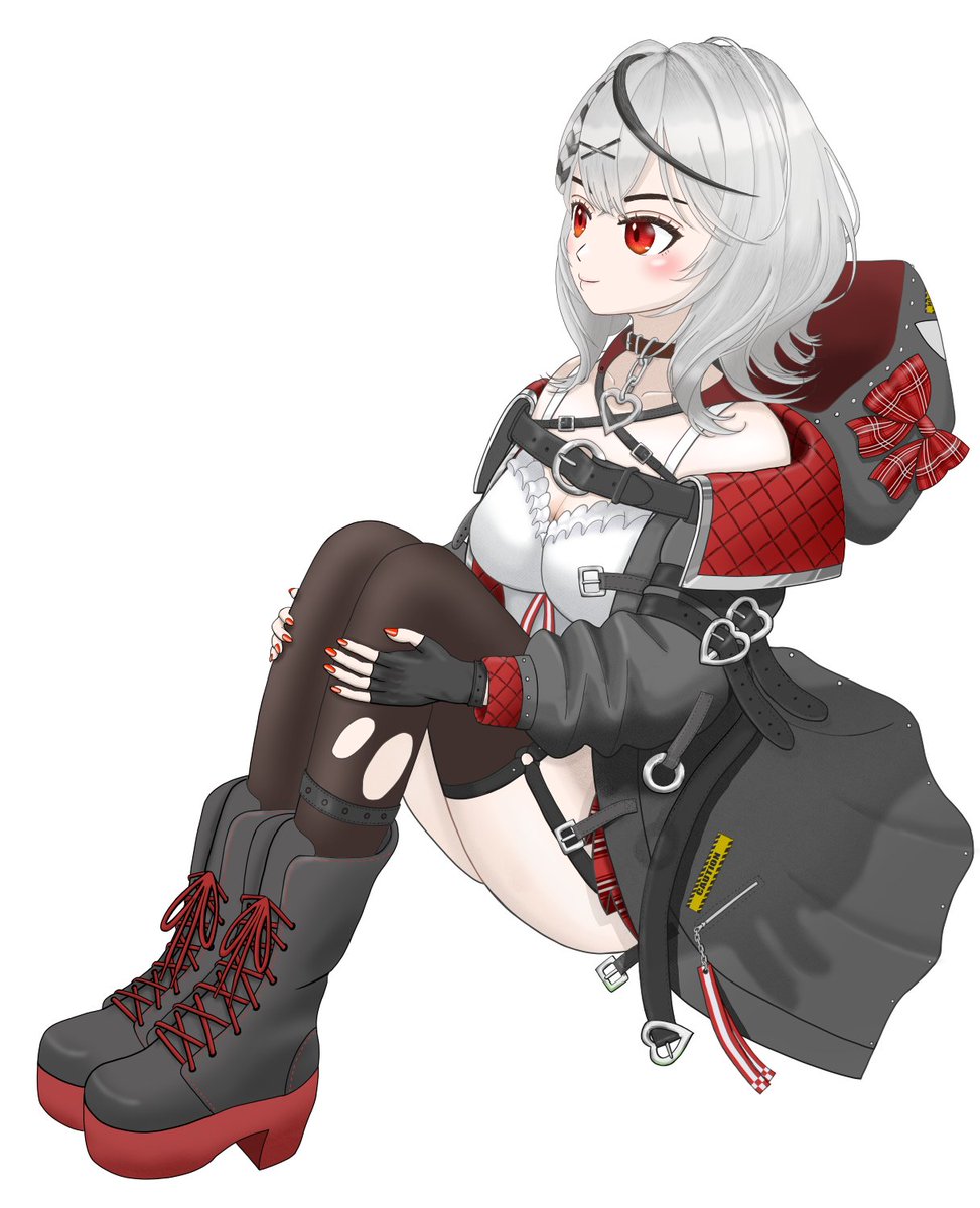 中々よいのでは? ラフもうちょっとだ! あとベルトとかキルティング #クロヱちゃんwip #さかまた飼育日記