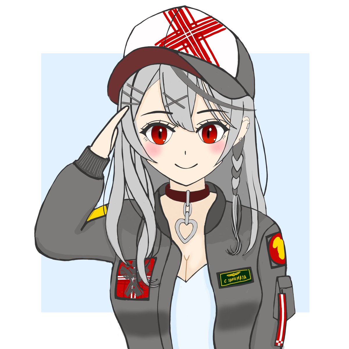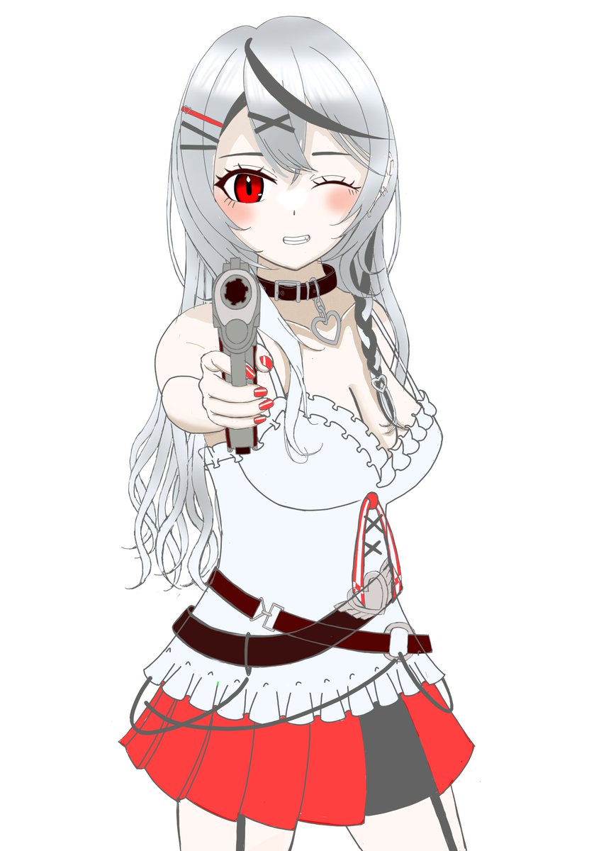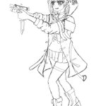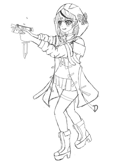 1911を構えるクロヱちゃん 色塗りが本当にむずかしい 鉄砲は描けたけど 鉄砲を構えてる女の子は描けなかったから嬉しいよね 逆光ぎみに塗れてるかな? #またまたさかまた #さかまた飼育日記