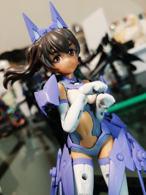 0 4 メガミデバイスやフレームアームズガール用のバイク 白に青いクリアパーツ入っていてきれいですね☺ #プリティーアーマー #メガミデバイス #FAガールズ 21/10/13 11:32