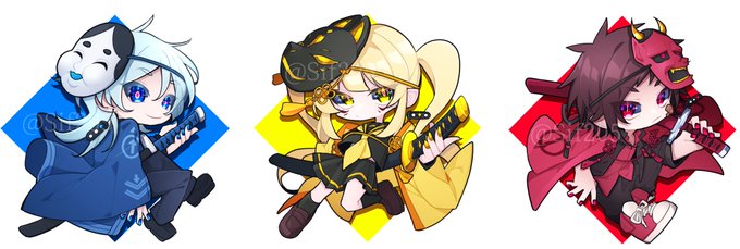 【お仕事】 末代鉄心様(@ MatusiroTesshin)、如月紅音様(@ kuon_k_0214)、PuPu様(@ pupu_nyao)のSDイラストを制作させて頂きました! ご依頼ありがとうございました! #commission #依頼絵