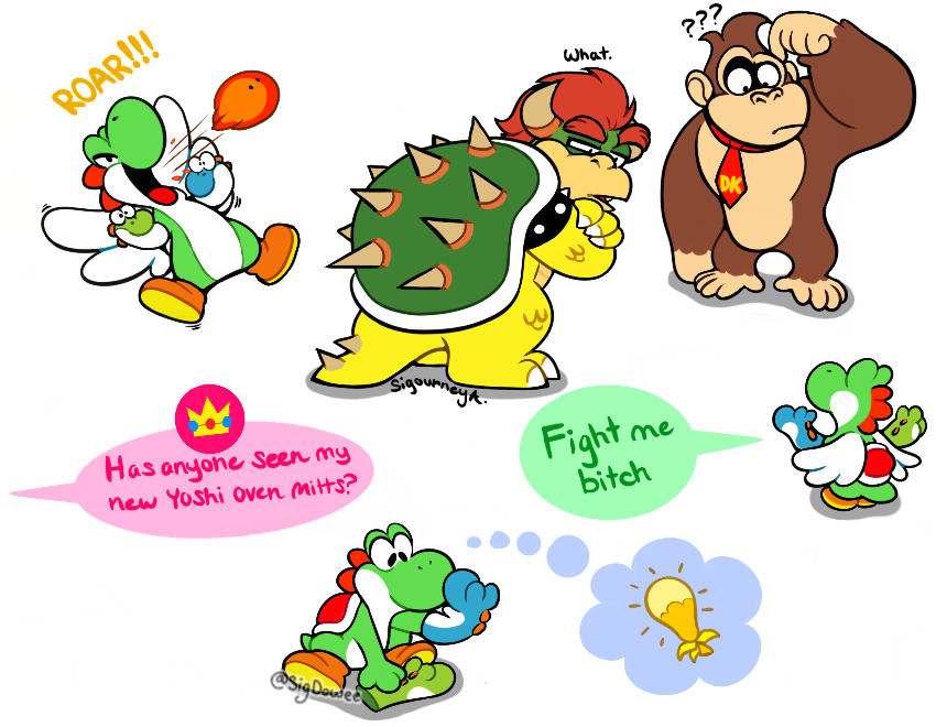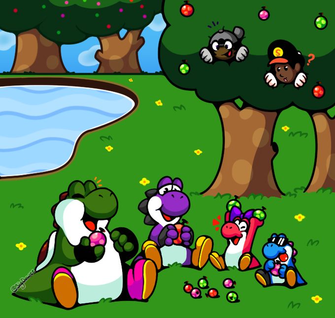 idk if my portrayal of Yoshi is even "in-character" or not, but tbf he's literally just a cutesy animal sidekick/mascot in canon. There's not much to him other than for me to draw him doing tons of random stuff just for fun twitter.com/superbellsubs/…