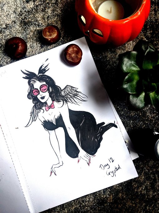 I managed to do an inktober on the plane. How am I even alive rn?Day 16 of #mabsdrawlloweenclub #inktober