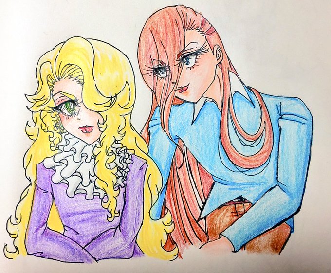 4 2 デレなしアーサーと、ロミオ×デューク ロミオこの前髪なら縦巻きロールでも男に見えなくもない #イラスト #アナログ #落書き #少女漫画 風 #オリジナル #オリキャラ 20/12/16 23:12
