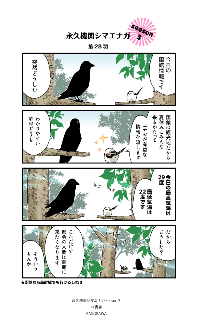 【✨隔週 月~金/Season3 配信中✨】 あざといシマエナガと賢いカラス Season3 第33羽 #シマエナガとカラスさん #永久機関シマエナガ #漫画が読めるハッシュタグ 夏だから!