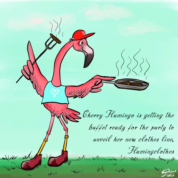 Letter F in the #AnimalAlphabets situations alphabet. F is for Flamingo on the fry @AnimalAlphabets #draw #illustrationart #artists #ArtistOnTwitter #doodle