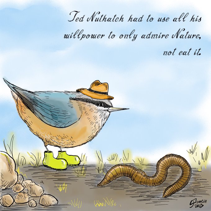 N in the #AnimalAlphabets situations alphabet. Nuthatch on a nature walk @AnimalAlphabets #illustration #drawing #procreate #ArtistOnTwitter #art #kidlitart