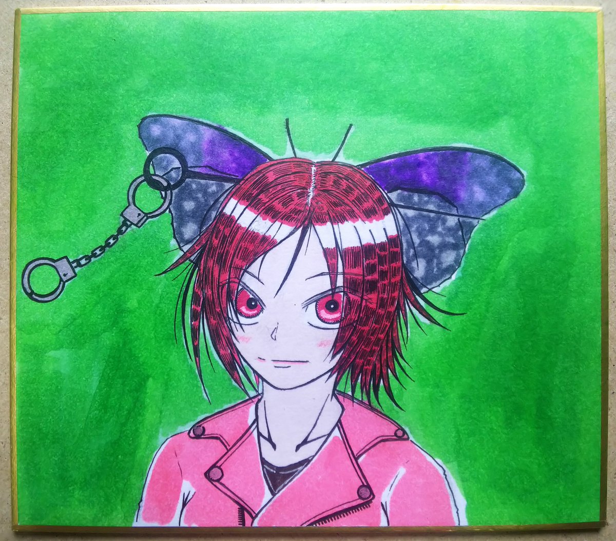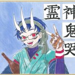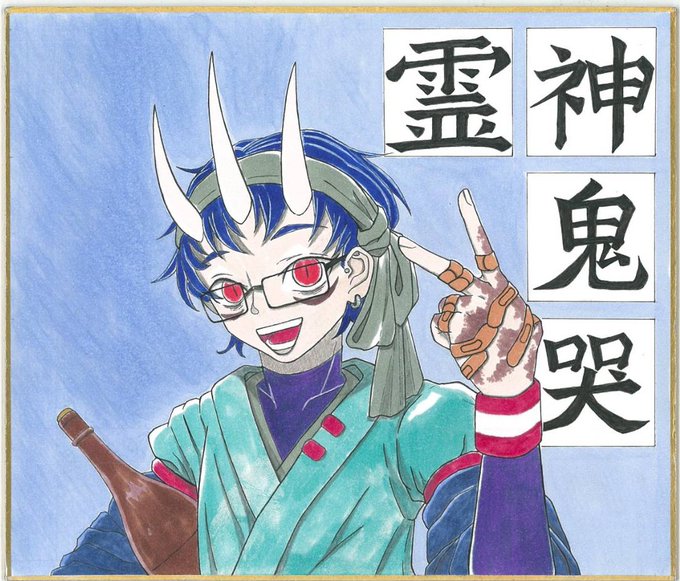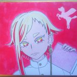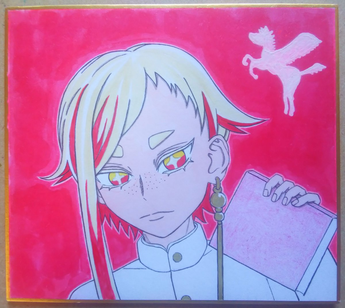 頁-旋(コウ-メグル)さん(@meguru_sen_ketu)の矢継紅刃さんを色紙に描きました。 紅刃さんを描くのは2回目です!(๑•̀ㅁ•́ฅ° ✧ #鮮創