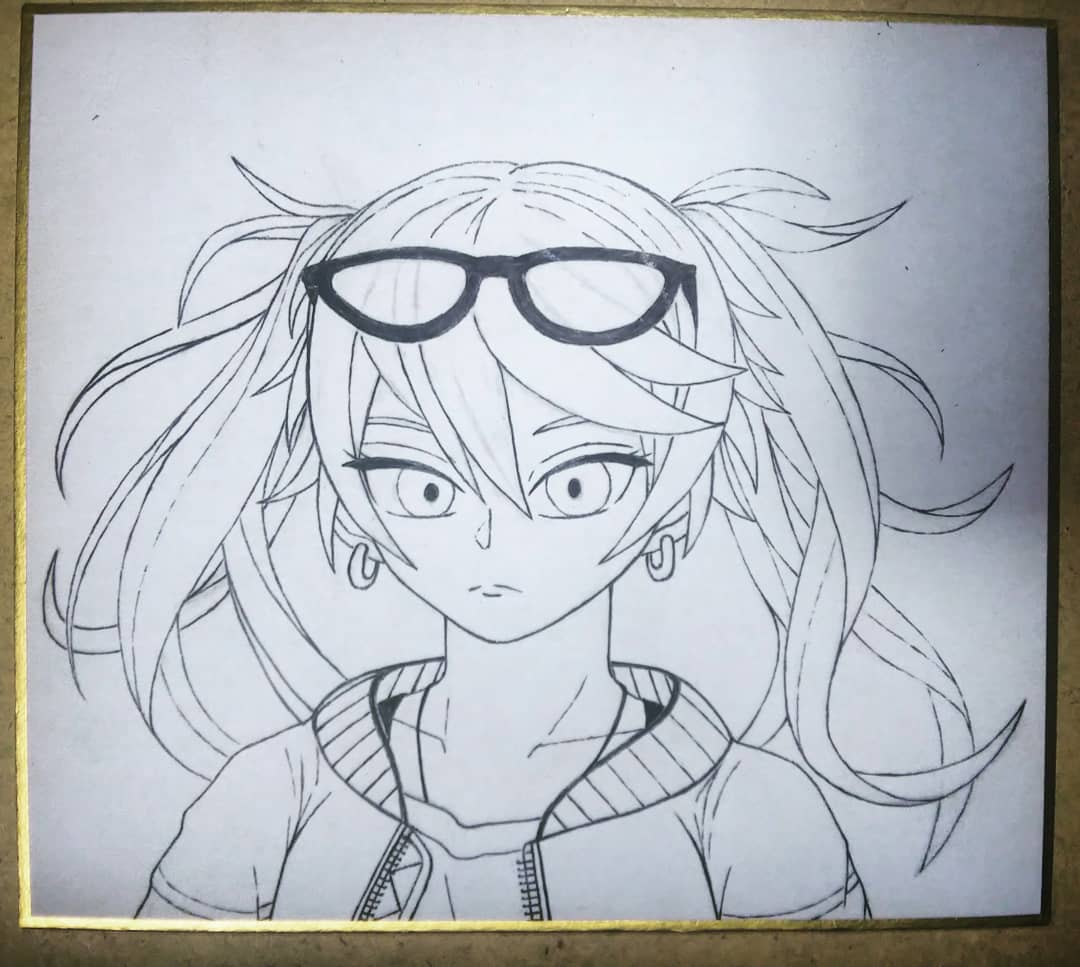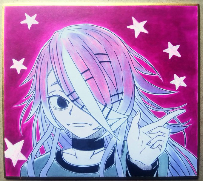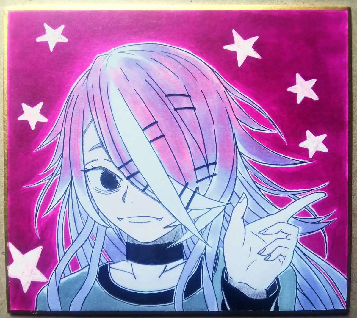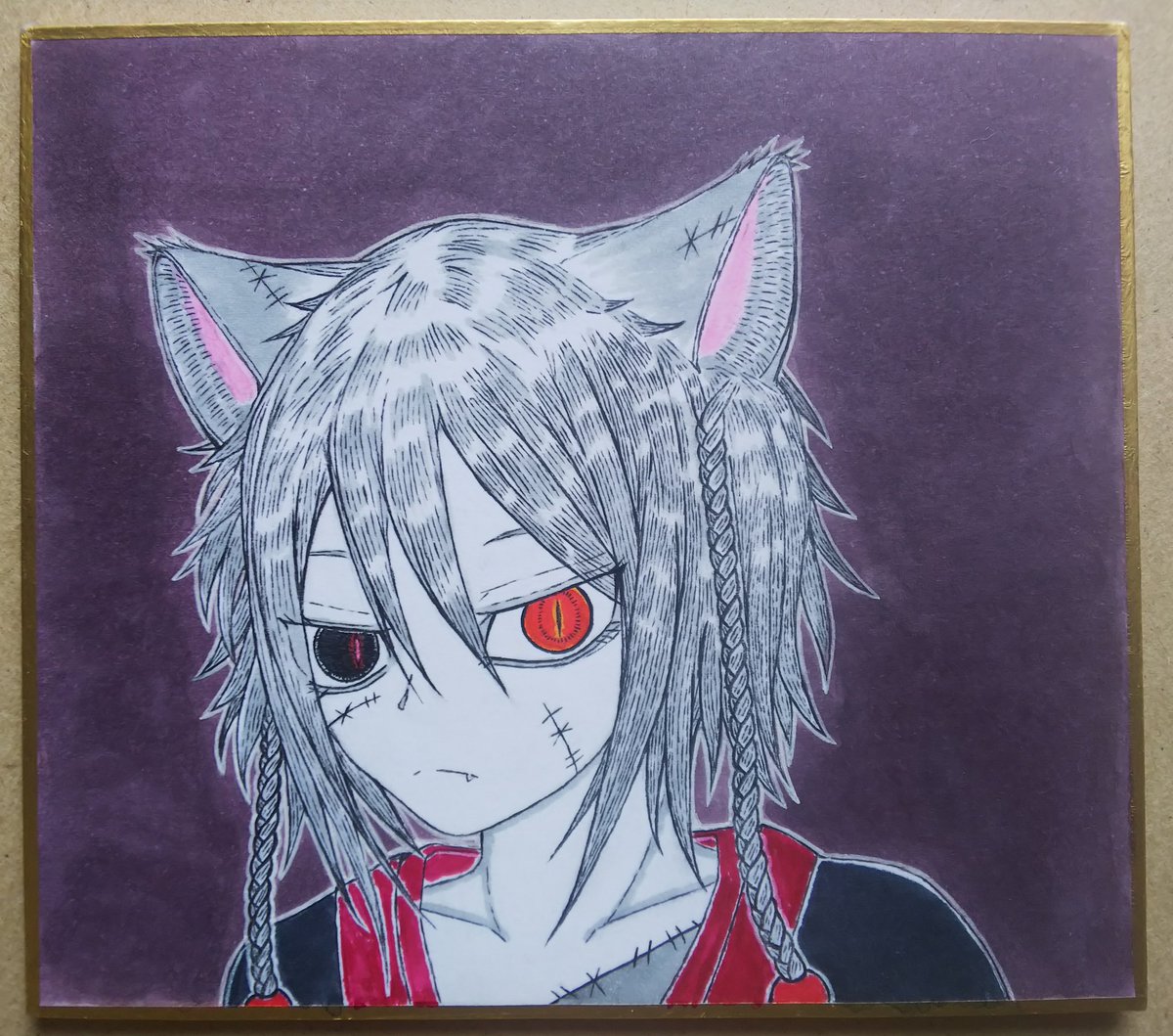 頁-旋(コウ-メグル)さん(@meguru_sen_ketu)の矢継紅刃さんを色紙に描きました。 紅刃さんを描くのは2回目です!(๑•̀ㅁ•́ฅ° ✧ #鮮創