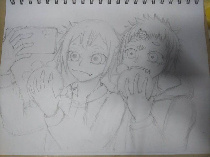 2 7 #このタグを見た人はラフ画とその完成絵を見せる ペン入れ後と色塗り後にスキャンしてスマホに保存してるアナログ勢です。 22/09/09 00:15