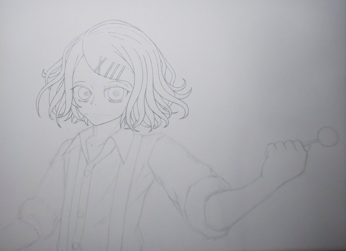 #このタグを見た人はラフ画とその完成絵を見せる ペン入れ後と色塗り後にスキャンしてスマホに保存してるアナログ勢です。