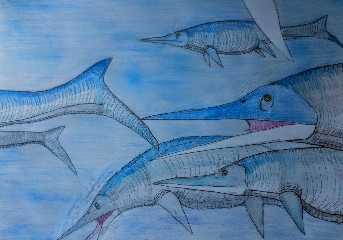 今日のお絵描き エロマンガサウルスを捕食するクロノサウルス 久しぶりにプリオサウルス類を描きました! クロノサウルスって他のプリオサウルス類に比べたら結構胴長短足(この子達の場合鰭?)なんですね! #クロノサウルス #エロマンガサウルス #首長竜