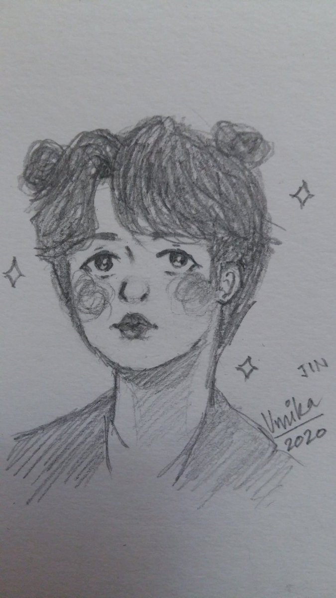 Kudos to our traditional art legend for 1k!!! 💛💛 Sigh ik this looks like a lazy sketch n its not that great than i expected ;; But Gabriel i love your art style v much!!! And you nice, keep going 🥺🥺🥺🥺💛💛💛💛 @Seokyhunni #Seokyhunni1kDTIYS #btsfanart #JINJIN