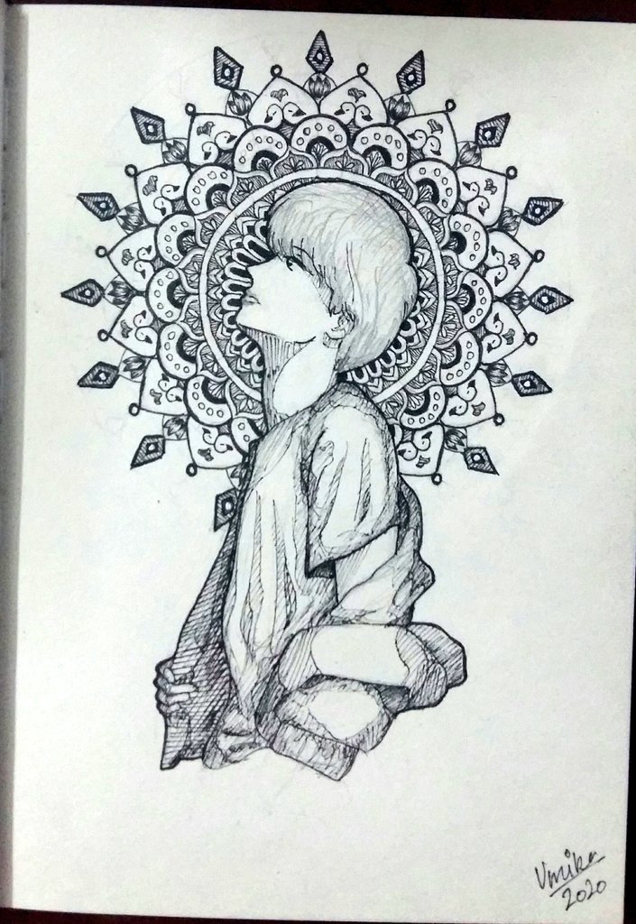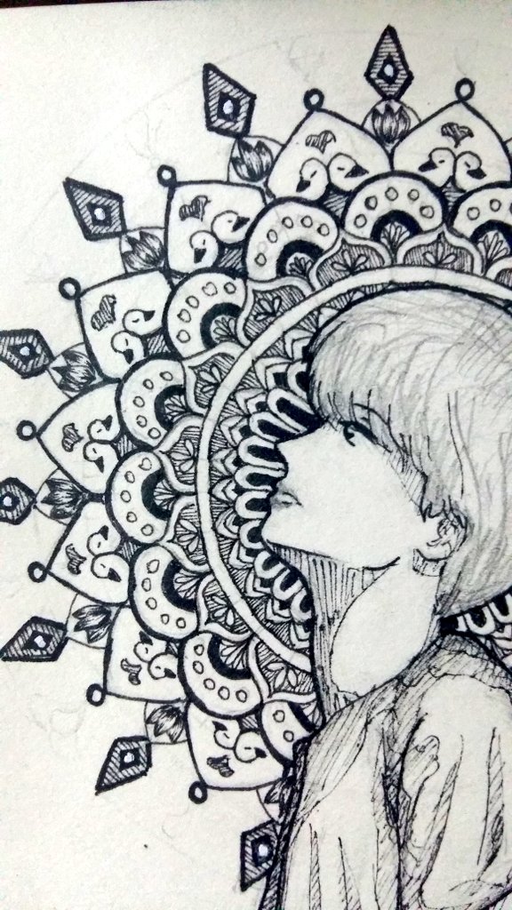 🌼Jimin's ethereal beauty🌼 #btsfanart #JIMIN #mandalaart #mandaladoodle #BTSJIMIN #pensketch #artistontwittter #mandalapensketch