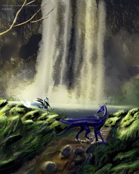#SmaugustDay22 -Territory #Smaugust #smaugust2021 I know it’s late but I’ve decided to make this series more then a Smaugust project & not stick to a daily schedule. Alenka & Azar are looking for a new home. The bg is based off the photo I took years ago #procreateart