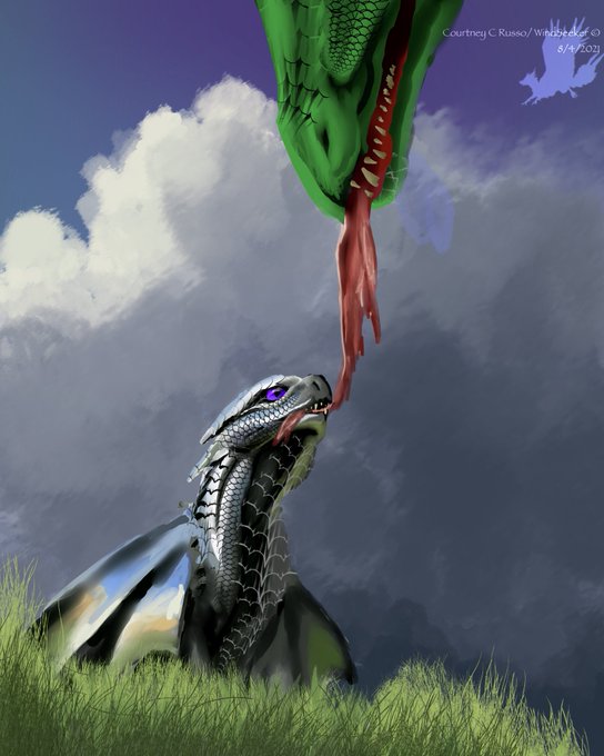 #SmaugustDay20 - Love My vision got better yesterday evening so I did this in 3 hours. Alenka and her new mate, Azar #Smaugust #smaugust2021 #dragons #procreateart