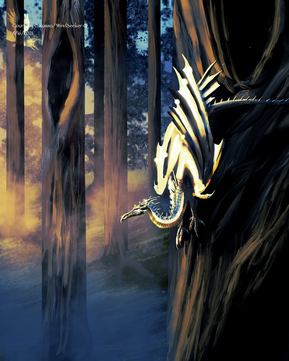 #smaugustday15 . Journey. #smaugust #smaugust2021 Alenka is off to a lend where the trees make even a dragon feel small #Procreate
