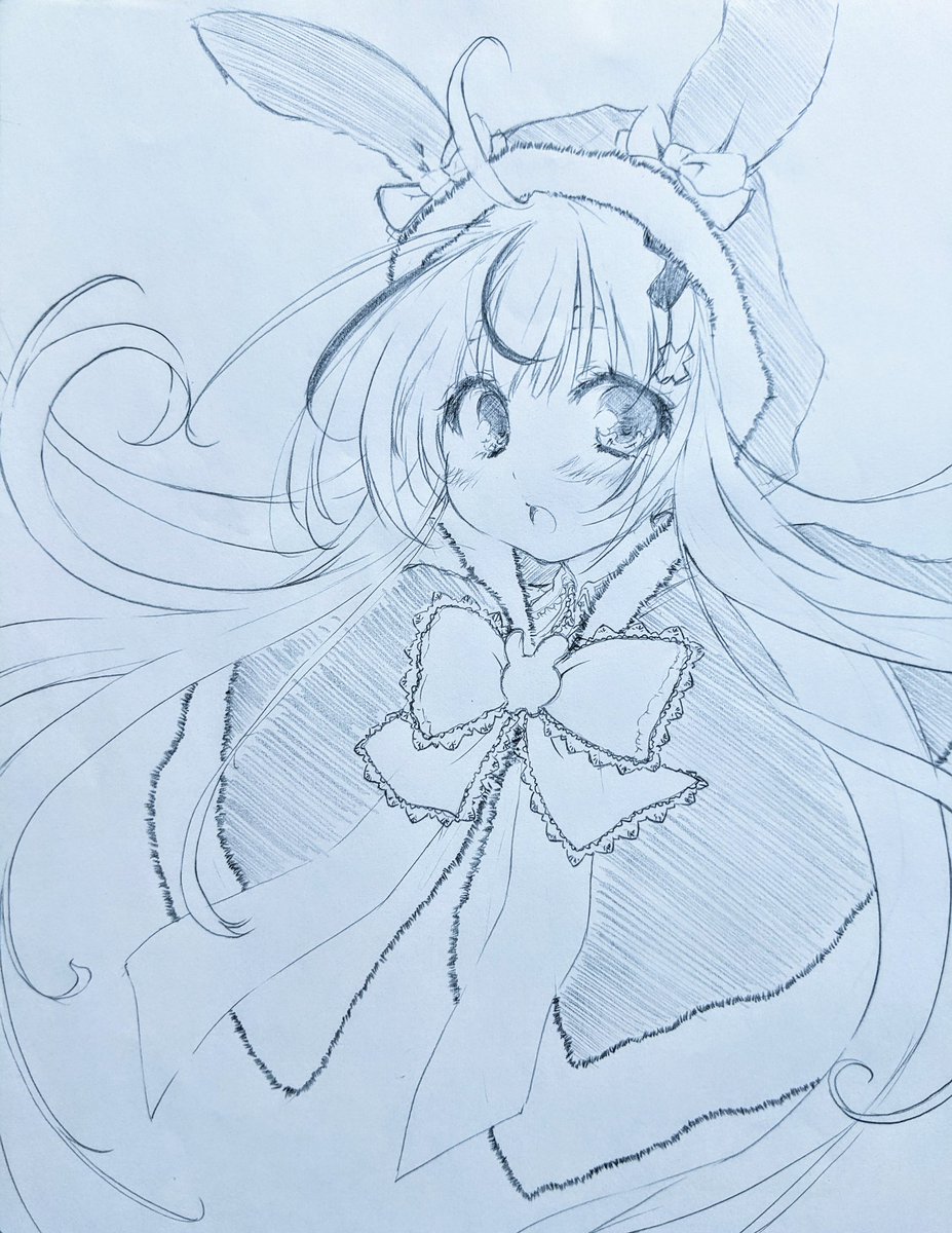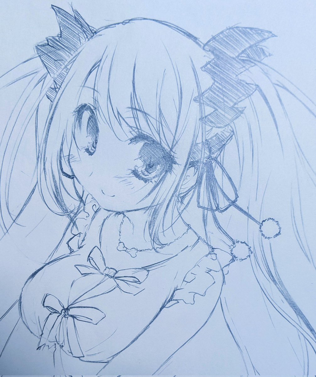 そんなわけで兎鞠以外で唯一描きたいと思ってた現役Vのパトラちゃむ、帰宅して1時間くらい唸りながらシャーペン握った結果 久々の楽描き&初描きで色々と硬いしボロボロだけどぼちぼち慣れていけたらいいなぁ #周防パトラ #パトラのアトリエ
