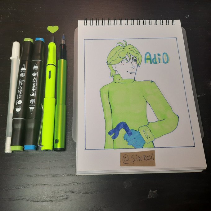 #Inktober thread May or may not draw something every day. Scanned versions will be on my blog later. Not following any prompts, but I'm going to use anything containing ink. #1 Adio (original character) Fountain pens and alcohol markers, gelly roll pen