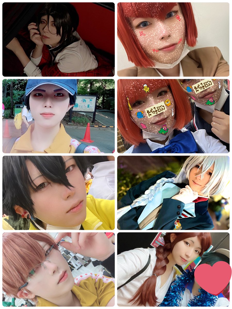 今年やった子まとめ‼️顔も酷けりゃウィッグも酷い子はスタンプで封印してます✋✋間違えて息子も一緒に出してしまった...😁🎾尽くしの1年でしたワロ 色んな子出せたな~の気持ち❗️来年は乙女ゲ増やします気合い対よろ👊👊 #コスプレ総決算2022