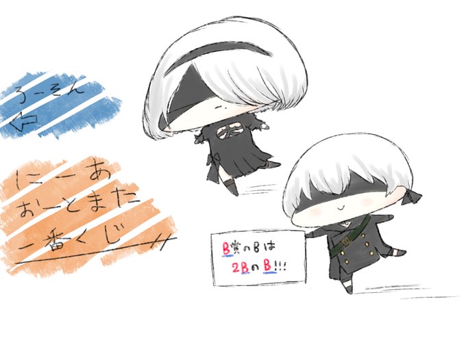 本日21日はローソンで一番くじという事で前回同様B賞のBは2BのBなのでお絵描きしました!!!!!! 待ってろよとぅっびっちゃーーー!!!!!! #NieR