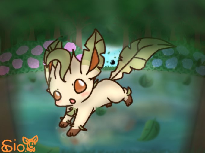 🌱森と湖と🍀 #リーフィアの日 #ポケモンイラスト