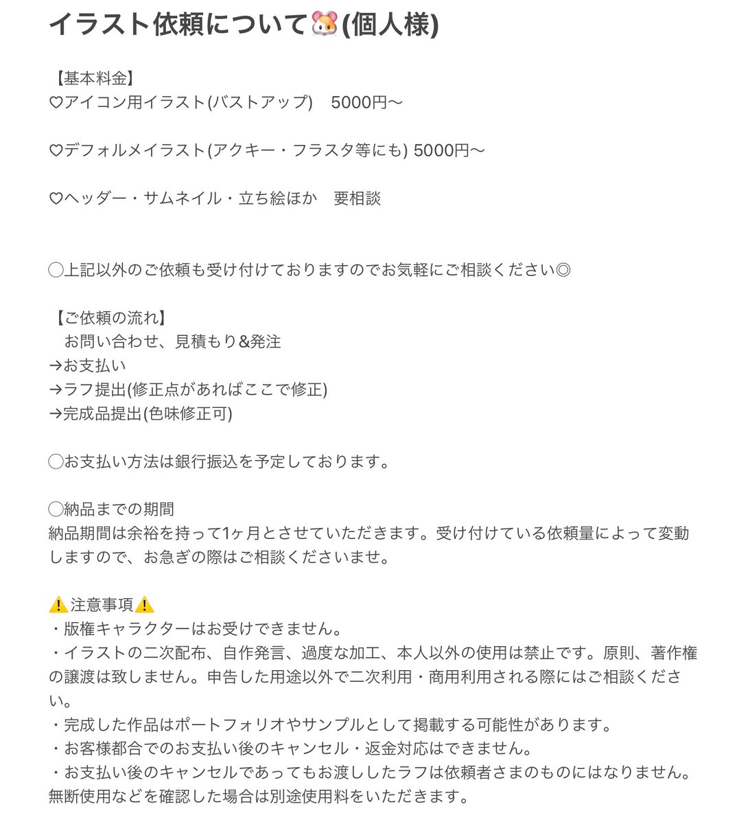 8 129 ◇イラスト依頼について◇ 12月下旬〜納期のアイコン・サムネイル・立ち絵等のご依頼を募集しております。 気になった方はお気軽にDMにてご相談ください☺️✨ #有償依頼 #イラスト依頼 21/11/24 14:18