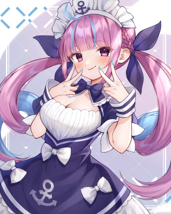 ツインテの日ということで再掲と差分⚓️ #あくあーと #ツインテールの日
