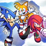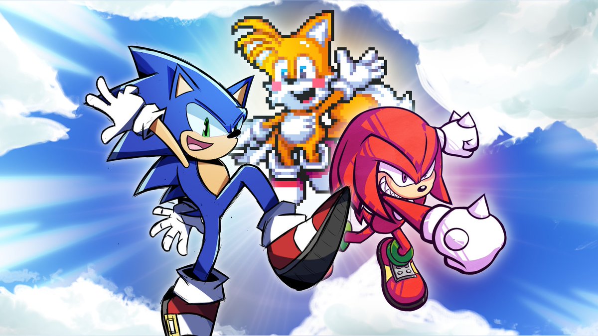 "Because we're Sonic Heroes!" Art collab with @OnTheDownLoTho (Sonic), @Quickalas (Tails), and me (Knuckles)! #SonicTheHedgehog