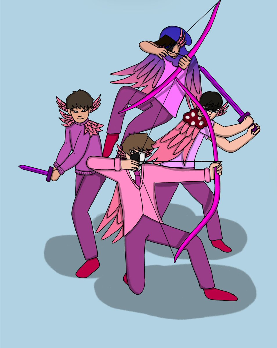 I did not watch MCC today as I had work but I did draw the Pink Parrots team for this month! #mccfanart #grianfanart #philzafanart #wilbursootfanart #smajorfanart