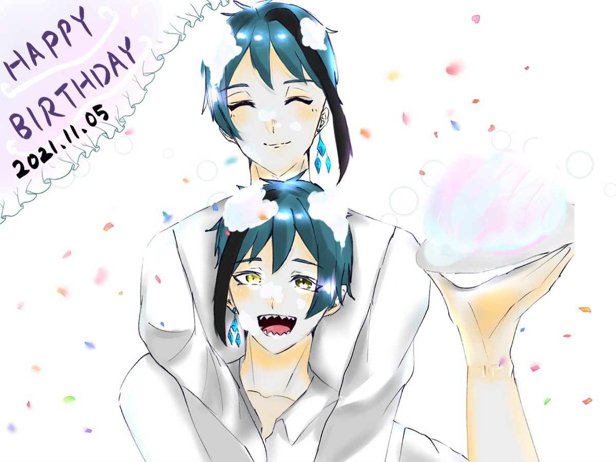 遅れてしまいました(;´Д`)💦リーチ兄弟おめでとう!🎂🎉💕良い一日を( *´꒳`*)❤落書き程度ですみません(;´Д`)💦 #リーチ兄弟誕生祭2021 #ジェイド・リーチ誕生祭2021 #フロイド・リーチ誕生祭2021