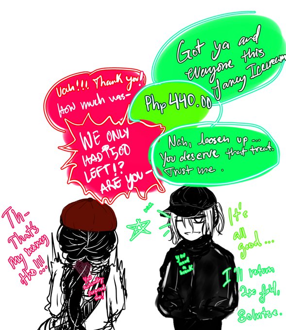 Doodling again. my take in #guizhong my HC is that Zhongli was originally rly frugal with money&it was Gui who goes over budget but ever since she died, he took her habit along with other stuff cz he misses her. #guili #Genshinlmpact #genshintwt #genshinimpactfanart twitter.com/SixPenceOA/s…
